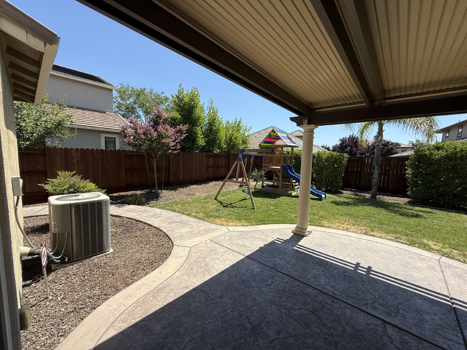 Large primary bedroom and bathroom, window shutters throughout and new LED lighting throughout interior of home and a whole house fan. Great size well maintained backyard with covered patio, a large play structure and storage shed, property is less than a block from Robert Bob Mahon Park. Garage is a 3-car tandem with epoxy floors for easy cleaning, including a workbench, vice and storage.