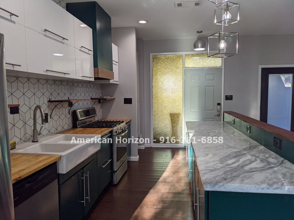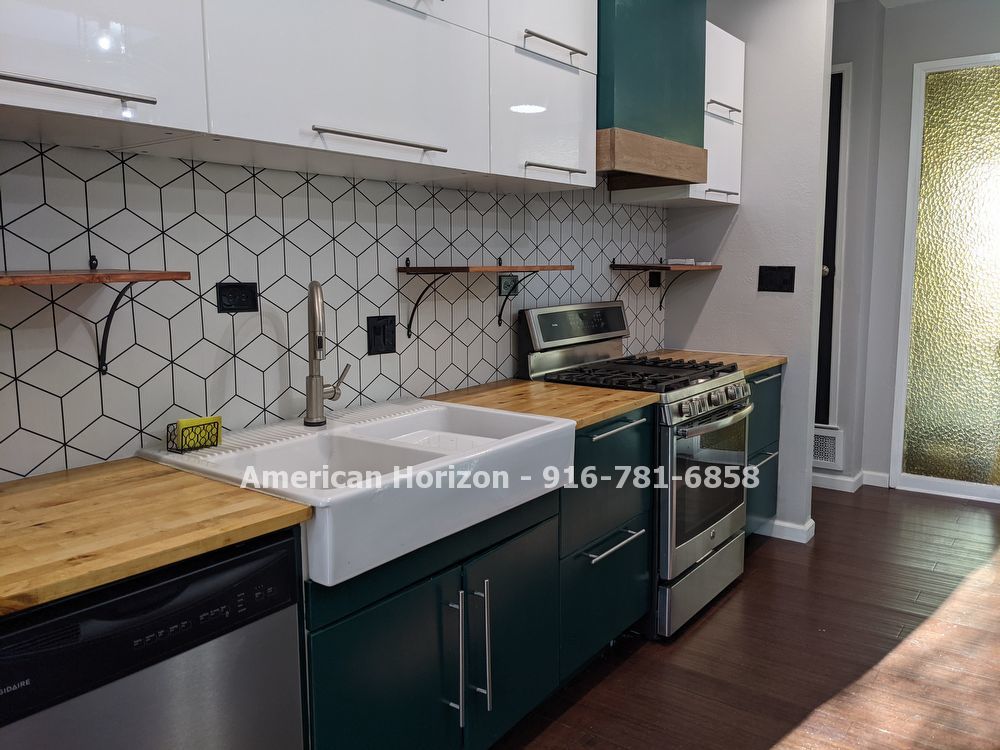 Enjoy all the custom design features in kitchen and bathrooms. Two tone flat panel cabinetry. Butcher block & granite counters plus farmhouse sink. Stainless appliances including dishwasher, gas, range, & fridge.
